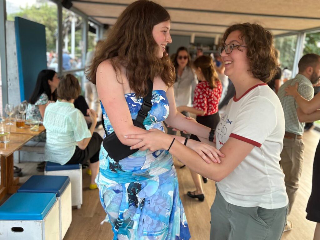 This is a picture of me (left) and my friend Ella (right) dancing.